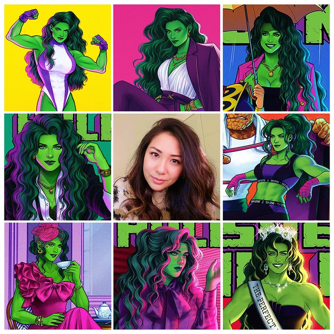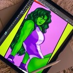 *Single female lawyer, fighting for her client. Wearing sexy mini skirts and being self-reliant.* Been inspired by @Tanksley_Clyde’s Spider-Man redesigns so I decided to try my hand at green wife 💪 #shehulk #HumanArtists