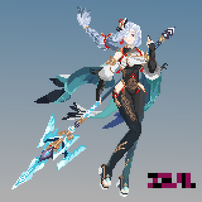 Shenhe _ Genshin Impact . Solicitado por un seguidor . #Shenhe #Shenhegenshinimpact #GenshinImpact #pixelart