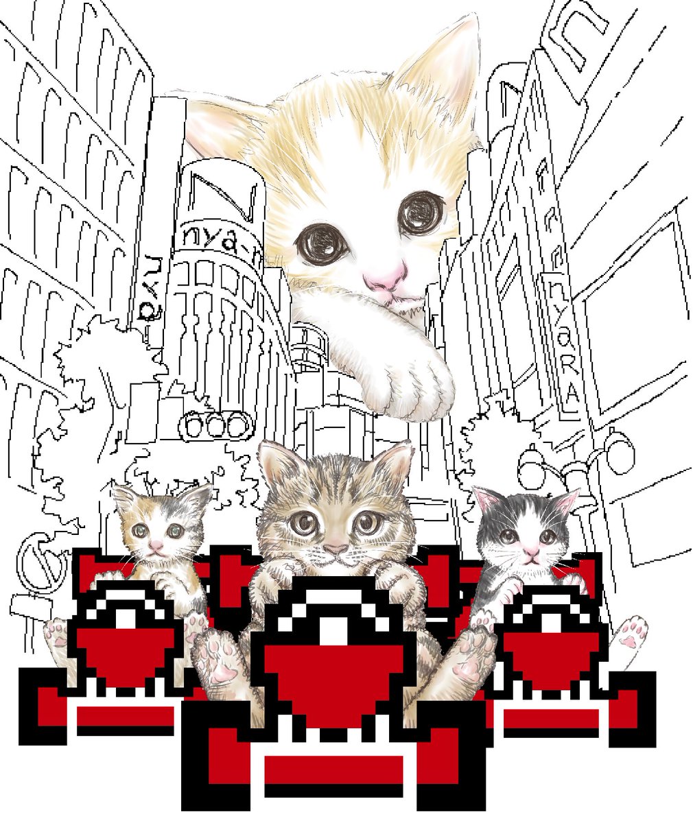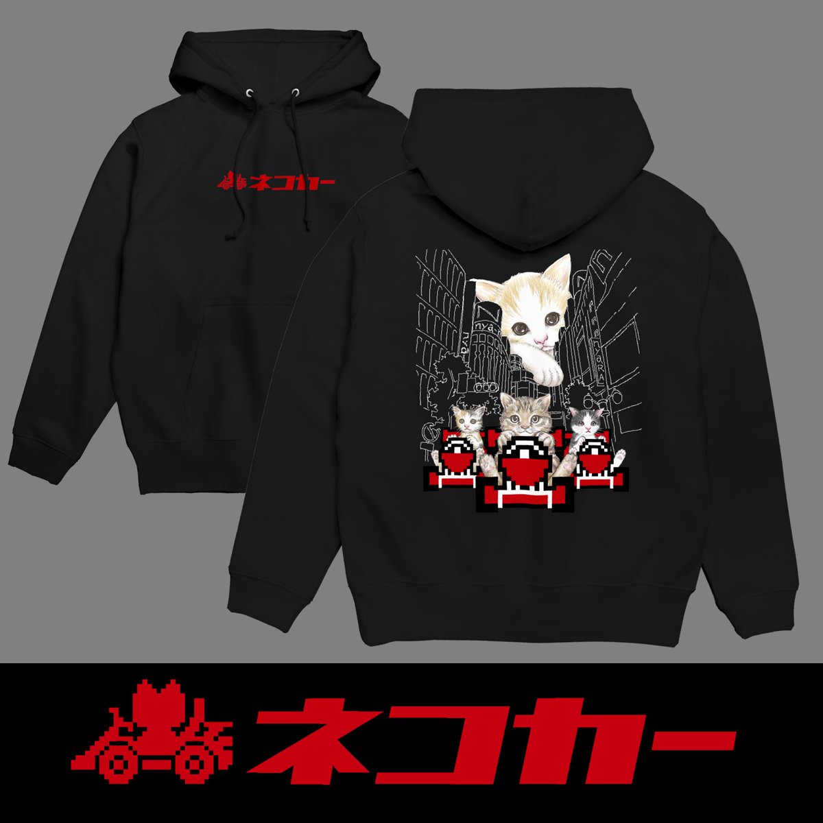 「ネコカー」 ブルンブルン! 猫様たちがシブニャ(渋谷)の街を猛レース。 仔猫もだまっていられない! suzuri.jp/nya-mew ttrinity.jp/shop/nya-mew/ #パーカー #猫 #イラスト #カート #渋谷 #ゲーム #foodie #cat #drawing #shibuya #8bit #game #racingkart #illustration