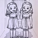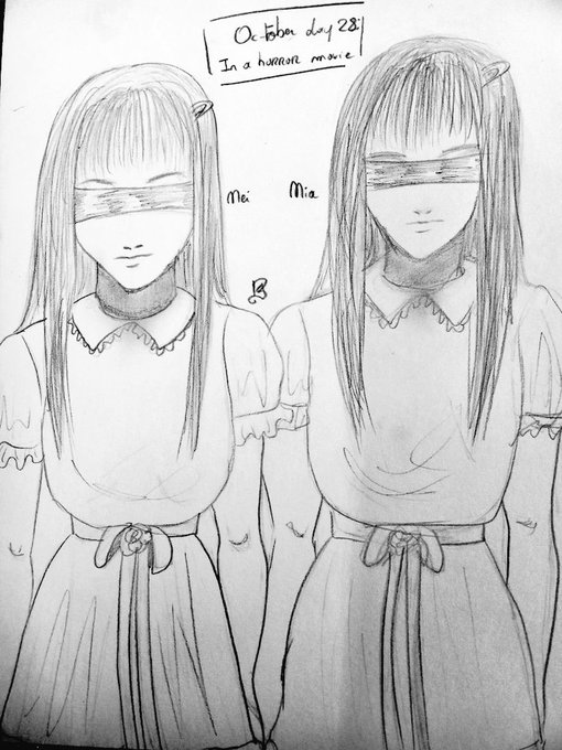 Oc-tober day 28 : In a horror movie Mei et Mia as the twin sisters from Shining 👭 I gave up with their eyes they were every time different lmao #ocs #inktober2021day28 #inktober2021 #horrormovie #shining