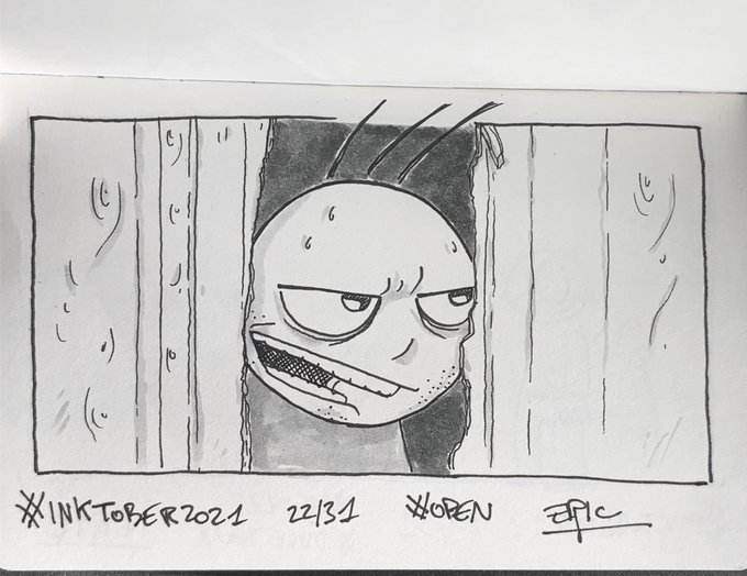 #inktober2021 jour 22… C’est peut-être un peu moins évident de trouver le film du jour (essentiellement parce que mon dessin est un peu tout pourrave…😅😱) #inktober #inkdrawing #open #illustration #moleskine #fabercastell #shining #kubrick #blackandwhitedrawing