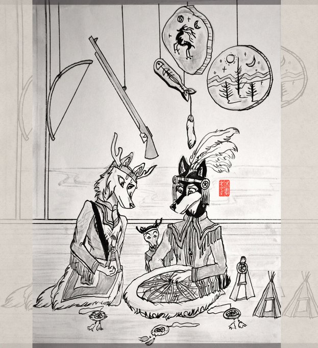 ❋ Day 18【Manchuria 🇨🇳🇷🇺🇲🇳】 ~ Apparently I forgot to post this last year, heh. #Tourtober2021 #Tourtober #Siberia #Manchuria #Evenki #Furry #FurryArtist #Inkwash #Sketch #Inktober #FurryArt #Wolf #Dog #Mouse #黑龙剑 #水墨 #Эвенки