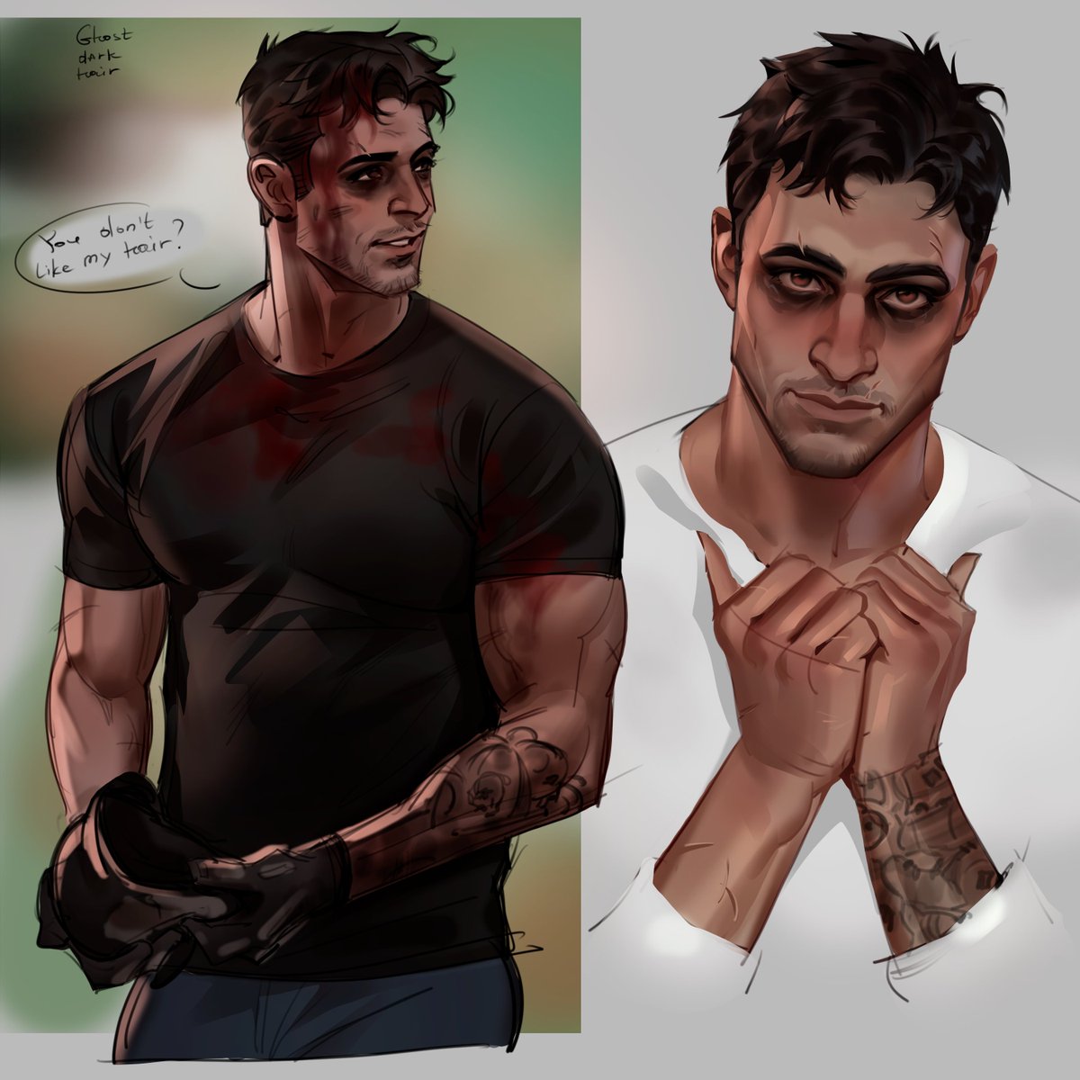 Ghost/ Simon Riley. I also tried to draw him with black hair and all sorts of sketches with him... #codfanart #ghost #SimonRiley