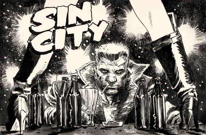 Lots of fun chatting w/ @JimMahfood on tonight's @Drink_and_Draw livestream! Here's the piece I drew on the show! Cheers! youtu.be/0d29grbsYj0 #SinCity