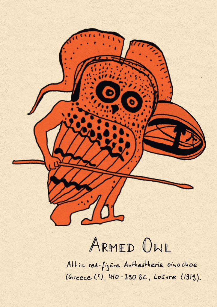 #SketchbookSunday: Sure, you‘re cool. - But are you as cool as an ancient Greek #hoplite #owl? 🦉😉 (As seen on an Attic red-figured vessel, probably 4th ct. BC Greece, today: @MuseeLouvre)