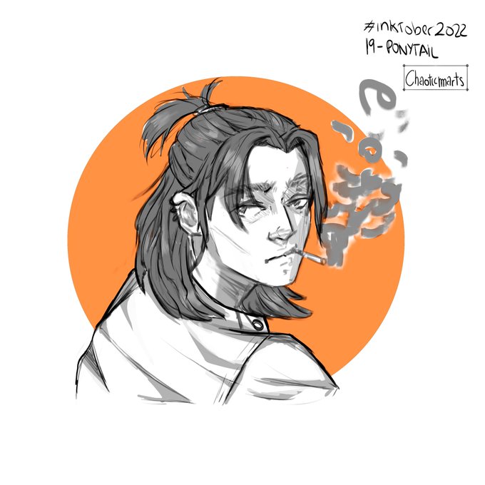 Inktober Day 19 - Ponytail. I think she had too many vapes. #art #digital #inktober #inktober2022 #inktoberday19 #inktoberponytail #ponytail #hair #smoke #eye #teeth #melting #skull