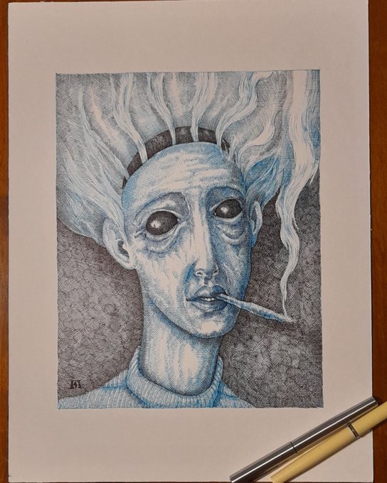 There is no smoke without fire... #drawing #illustration #art #inkdrawing #smoke #portrait #Artist #blue