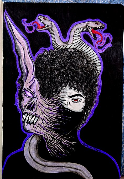 My hand hurts OMFG 😹 Well... Here is another drawing of @CORPSE with snakes, because yes 🤷🏻♀️🖤 @Corpse_Husband #CORPSE #corpse #corpsehusband #corpsehusbandfanart #corpsefanart #corpsetwt #snake #snakes #fanart #drawing