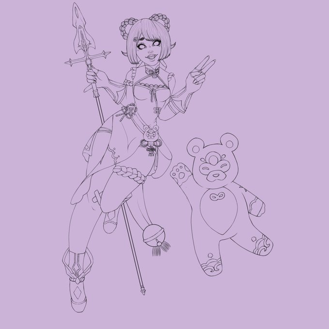 New #wip of #Xiangling and #guoba !!! Show this some love! #genshinimpactfanart #genshinimpact #LiuYe #knightsoffavonius #favonuislance #pyro #spicy