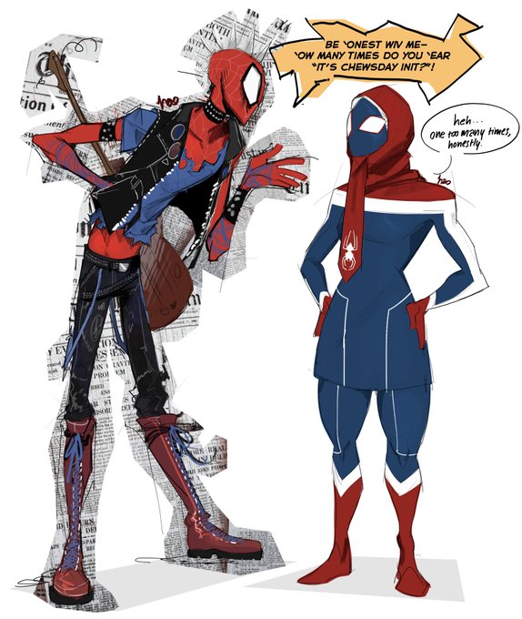 🎸HOBIE & GWEN🥁 スパイダーバースの次回作で2人の演奏シーンが観たい。 エンドロールでスパイダーマンのテーマをRAMONESみたいなパンクアレンジでやってくれたら嬉しい。 #SpiderVerse #Spiderpunk #SpiderGwen