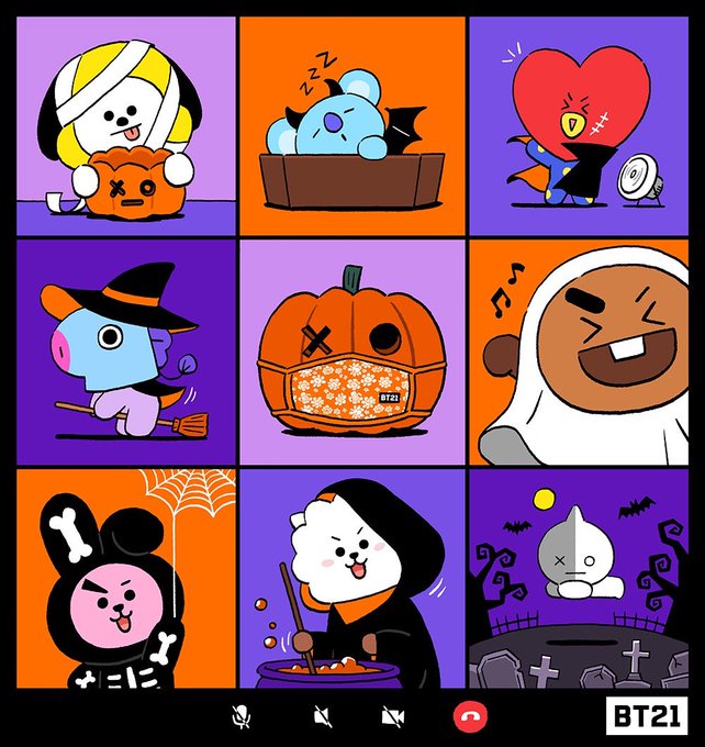 H, hello...? ...TRICK OR TREATING HAS GONE ONLINE! 📱🎃 Enjoy Halloween at the comfort of your home. Be safe, and have fun! #BT21 #HALLOWEEN #SpookySzn #Halloween2020 #TrickorTreat #FaceTime #HalloweenAtHome #STAYATHOME