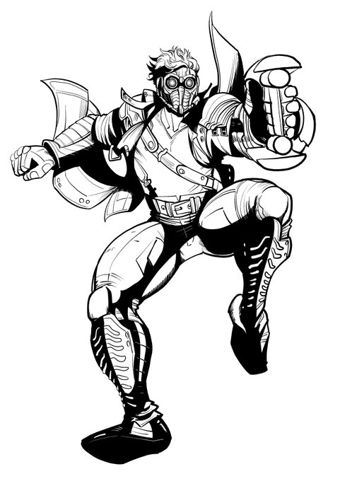アメコミ模写 スターロードを描きました。一時間半くらい?こいつ前から思ってましたがバルタン星人そっくりですよね。 #Starlord #GuardiansofTheGalaxy #MarvelComics