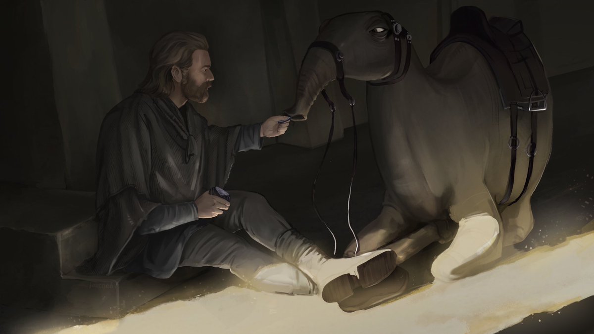 In the trailer it looked like Obi-Wan will be working some menial labour job on Tatooine. I bet he takes his Eopie to work, sits with her in the shade on his breaks, and gives her some food. 🥺 She’s a good Eopie! #obiwankenobi #obiwan #starwars #starwarsart