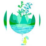 A circular formation of green hills and leaves, together with a person wearing a light green raincoat holding an umbrella. #summer #summerday #summerdays #summerseason #summer2022 #art #artist #artwork #digital #digitalart #digitalartwork #illustration #illustrator #photoshop