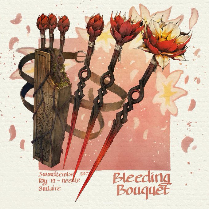 #swordtember #swordtember2022 Day 19 - Needle Bleeding Bouquet a standard weapon wielded by one of the Wallflowers, Magnolia. Hi-Res images and Stats are available on my Patreon