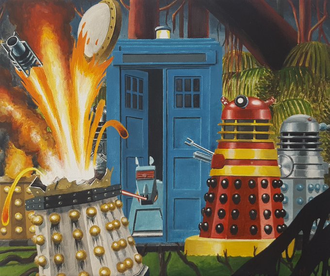 #DoctorWho #FanArtFriday 'K9's Special Mission part 1' 🙂 #K9 #Daleks #TARDIS #canvas #illustration #art