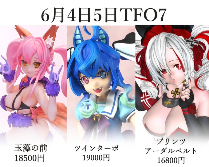 サンプルが来たので告知を 来週の #トレフェスオンライン7 新作1/7 サクラチヨノオー 再販1/7 マンハッタンカフェ 1/12可動クロエ 全て業者製瞳デカール付属です。 サクラチヨノオーの完成品は、木か金曜になりそうです…。 #TFO7 #ウマ娘 #サクラチヨノオー #マンハッタンカフェ
