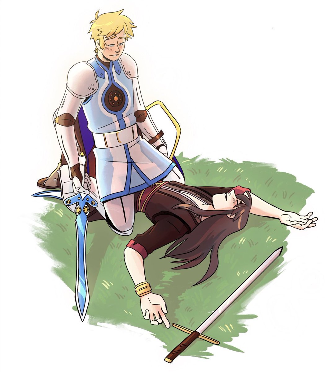 The digital download version of mine and salty's TOV fanbook is up now! It's 70 pages of comics and illustration centered mainly around flynn and yuri lol check it out at the link below ~ #talesofvesperia #tov #fluri