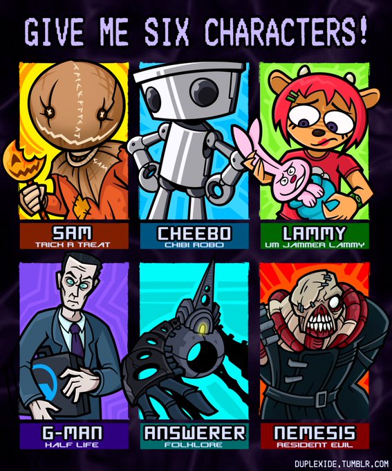 Did the #sixfanartchallenge on tumblr! I might do another on here if anyone wants to send in a request. #sixfanarts #trickrtreat #chibirobo #nintendo #Gamecube #umjammerlammy #parappatherapper #PSX #PS1 #gman #halflife #HalfLifeAlyx #ResidentEvil3 #ResidentEvil