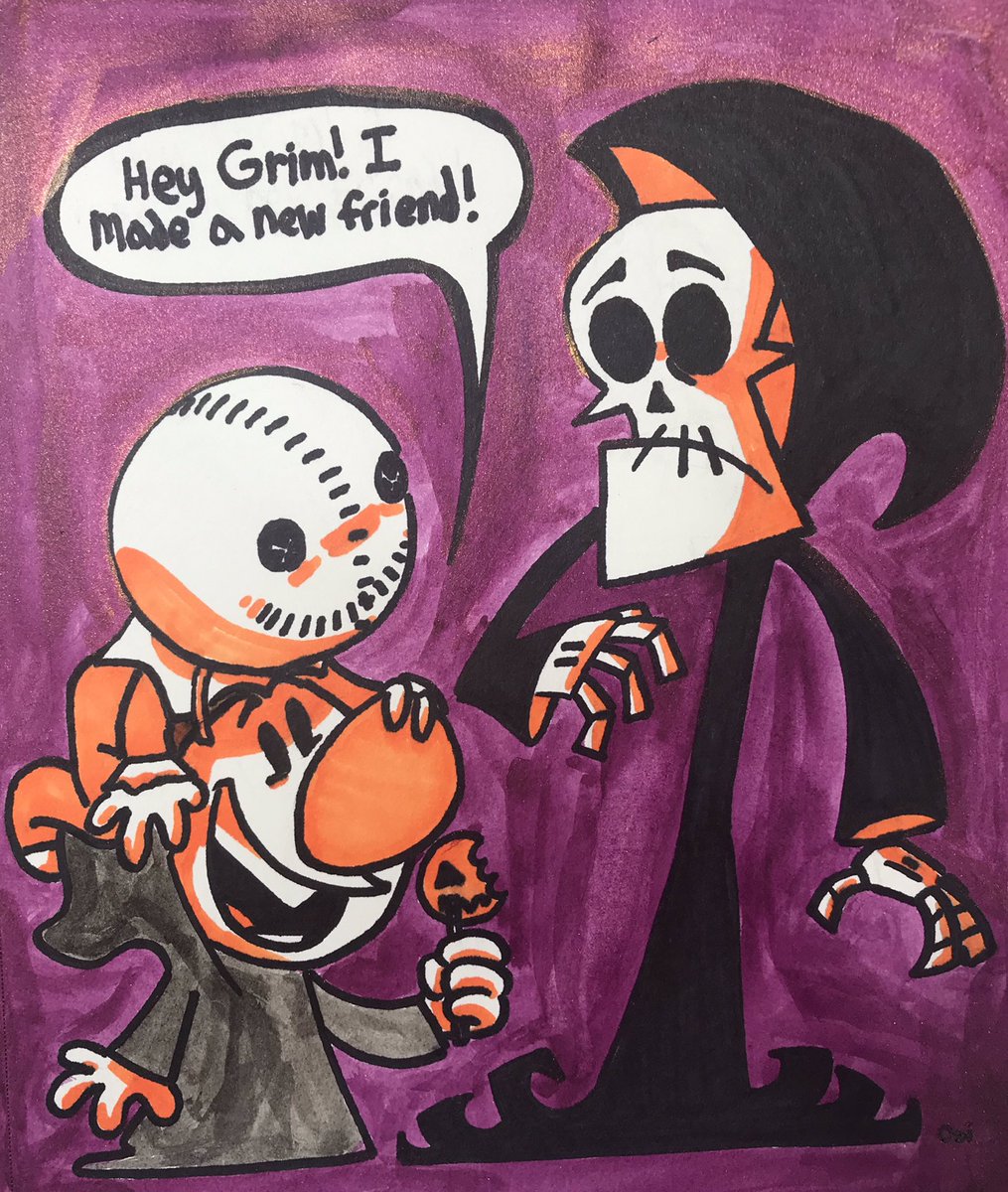It's spooky season again! What's your your favorite Halloween character? #illustration #art #artist #artwork #fanart #pencildrawing #ink #inked #magicflyacrylicpaint #paint #paintmarkers #artistsofinstagram #trickrtreat #sam #inktober #traditionalart #travisstarlingart