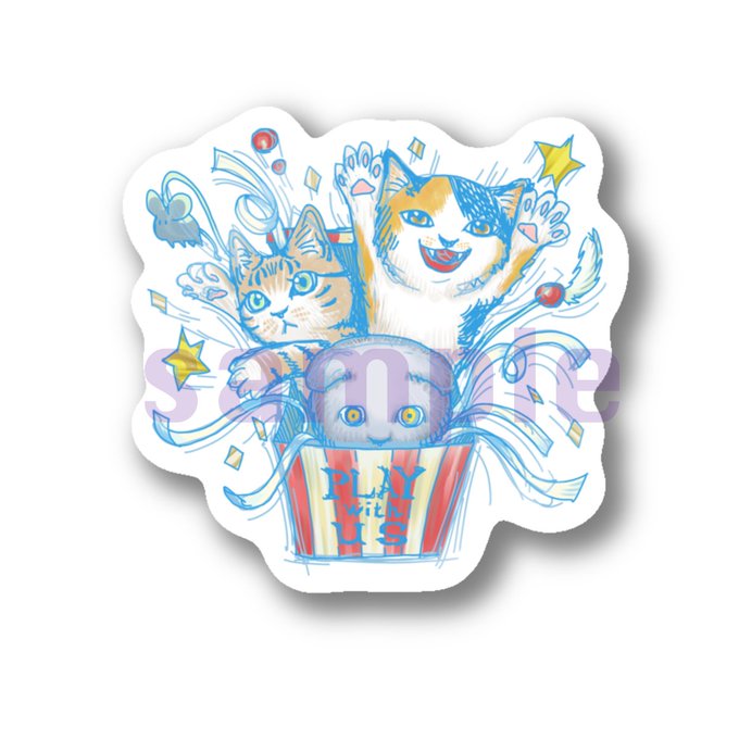 #SUZURIのTシャツセール 「キャッツインザボックス」ステッカー suzuri.jp/nya-mew/662981… chomuさん、お買い上げありがとうございます、恐縮です 他にも猫! suzuri.jp/nya-mew #猫 #ねこ #子猫 #イラスト #絵描きさんと繋がりたい #Cats #kitten #Tshirts #Tシャツ #びっくり箱 #Jackinthebox