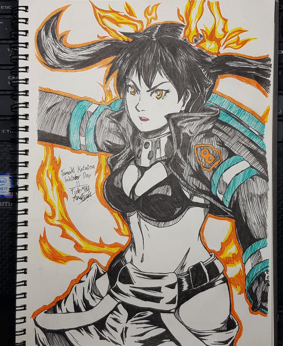 Day 11 - Tamaki from Fire Force. It’s a great anime with great action sequences. #arttrober2019 #inktober2019 #tamakikotatsu #fireforce