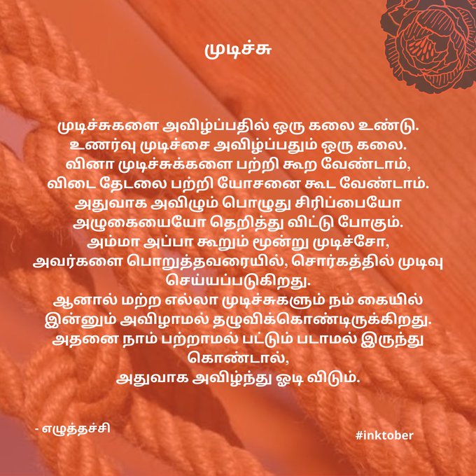 Ennayum twitter use panna vechutangale.... Idha miss panna #inktober2021 poidume. Knot was the topic for 4th October 2021. Here it goes. #Tamil #words #inktober #ezhuththachi #knots