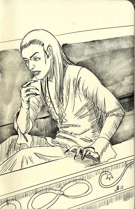 Day 12 - “Foggy” I headcanon that Herbert’s mother died at childbirth, and she was an unturned human too. #Fantober21 #Inktober2021 #Inktober #БалВампиров #TanzderVampire