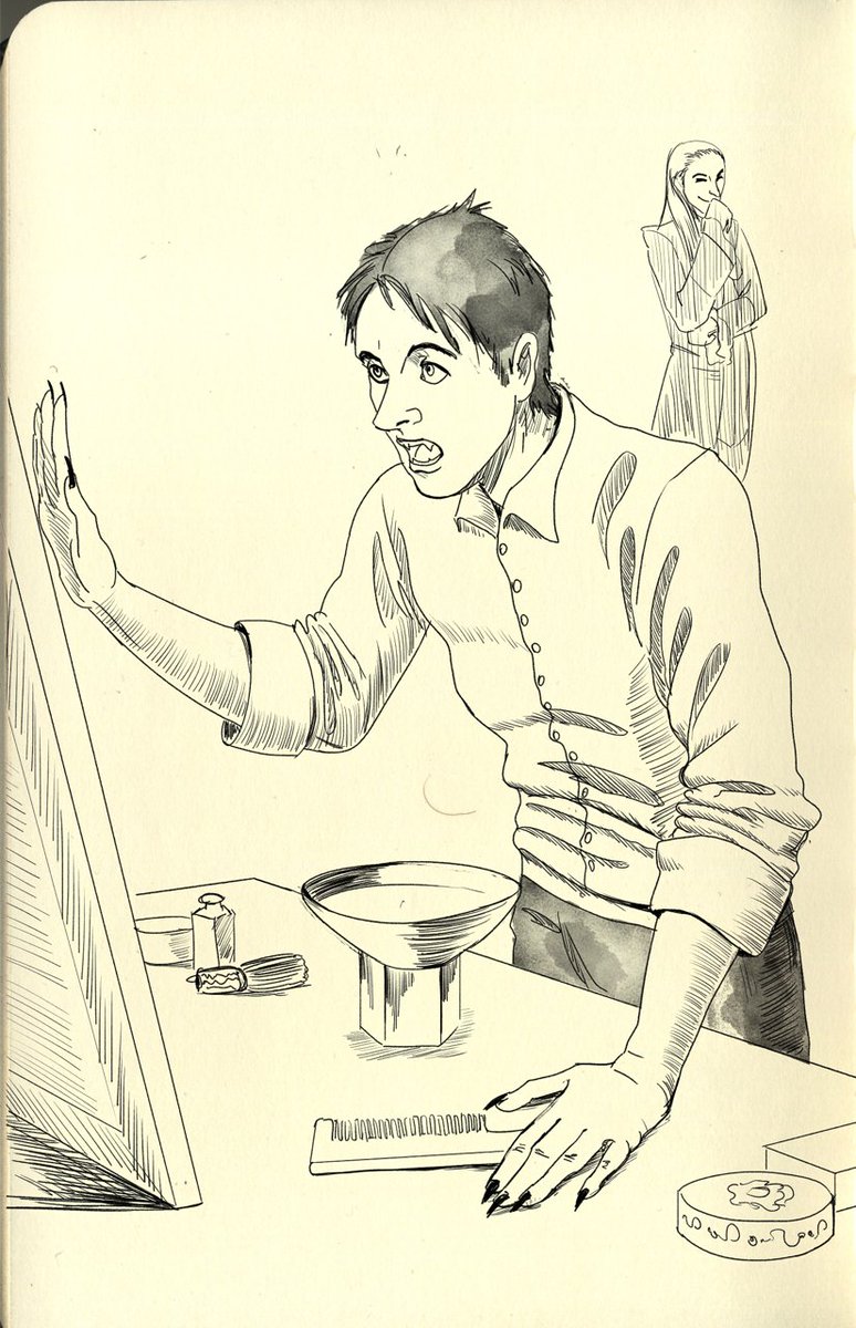 🦇 Totale Finsternis🦇 Spooktober und es sind zu wenig (old skool) Vampire in meiner TL. In Tanz der Vampire war ich im August. Bin kein Musical-Fan, aber das hab ich geliebt. Wieso beschleicht mich wieder das Gefühl, es stimmt nix im Bild? #TanzderVampire #Fanart #Spooktober