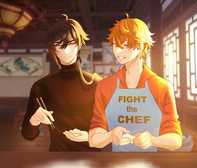 Late submission Tartali Week day 1: cooking together (ft. Aether) 6 must be their favourite number I guess #GenshinImpact #原神 #Zhongli #Childe #tartaglia #Aether #Tartali #タル鍾 #TartaLiWeekRound2