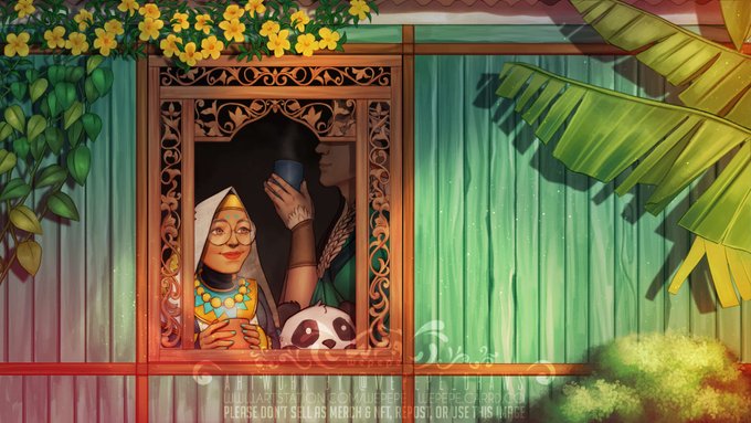 Ngeteh Sore ✨ Tea Time 🍵 I'm so happy I finally finish this piece, in between working on many commissions ☺️ I hope you guys likes this piece too ❤️ #wepepedraws #OC #teatime