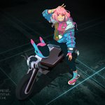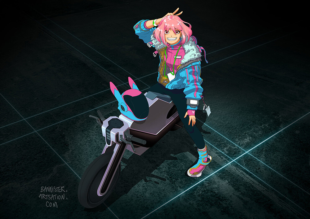 Found an oldie in a remote folder. An unused version of a pic from my "tech wear" series from a couple of years ago. #anime #techwear #cyberpunk #bikerider #bike #ebike #urban #artistsontwitter