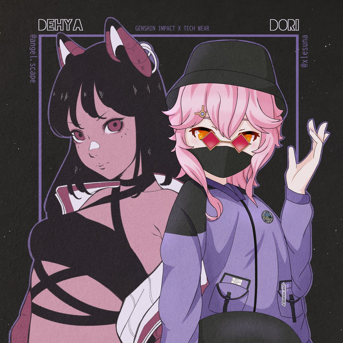 Genshin collab with the bestie @xLeechu 🤸✨ #genshinimpact #Dehya #Dori #techwear #arttwt #ArtistOnTwitter #genshinimpactfanart