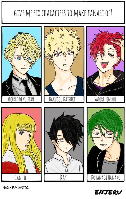 Third and will probably be my last entry for #SixFanarts 😅 #Richard #TheCaseFilesOfJewelerRichard #BakugouKatsuki #BokuNoHeroAcademia #SatoriTendou #Haikyuu #HQ #Canute #VinlandSaga #Ray #YakusokuNoNeverland #KoyanagiHanako #Wotakoi