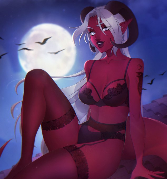This might not excite everyone as much, but god this is shaping up to be one of my all-time favourite illustrations 🥹 People struggle with my unique horn shape, so I wanted to show y'all the base without my bangs in the way to help fanartists. Horn study! #ArtMelissa #Tiefling