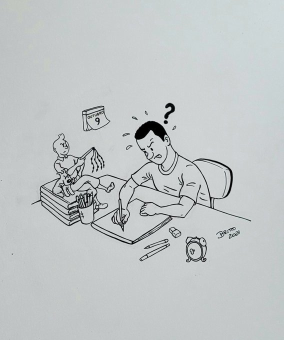 O tema do #inktober 9 foi Pressão/Pressure E se tem artista que não se sente assim nesse desafio, tem alguma coisa errada 😅 (Inspirado em um momento real da vida de Hergé) #tintinktober #tintin