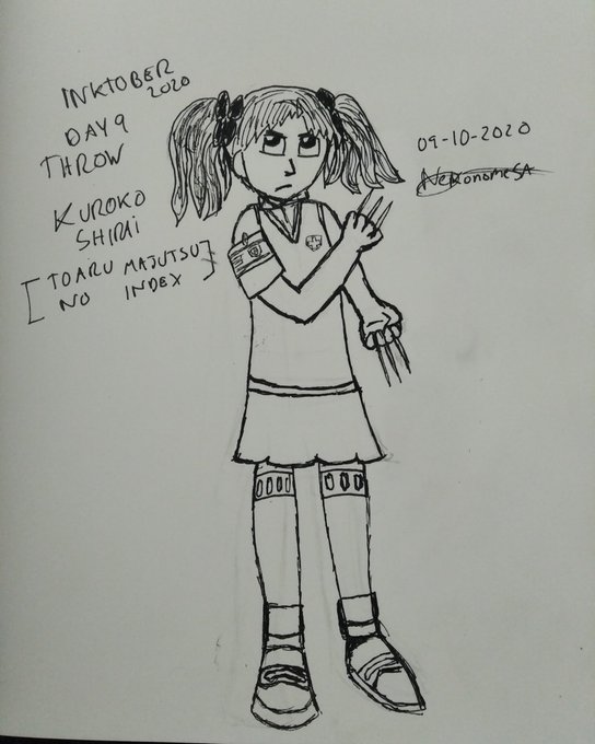 #inktober2020day8 Throw (Lanzar) Kuroko Shirai de #Toarumajutsunoindex por su técnica de lucha a base de lanzar clavos largos @ConoceArtistas @ArteDifusion @Support_Arts @ArtCult_es #inktober2020 #inktober @graphicissimus #Toaru @CommunityArtizt #day9throw #ArtistOnTwitter