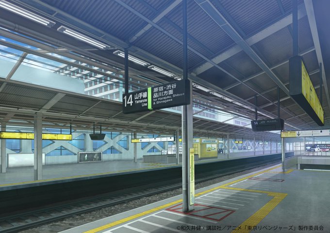 本日はこの作品からこの1枚を。【東京リベンジャーズ】美術ボード「新宿駅_ホーム_昼」 #東リベ #toman_anime #草薙 #kusanagi #アニメ #anime #art #backgroundart #イラスト #イラストレーション