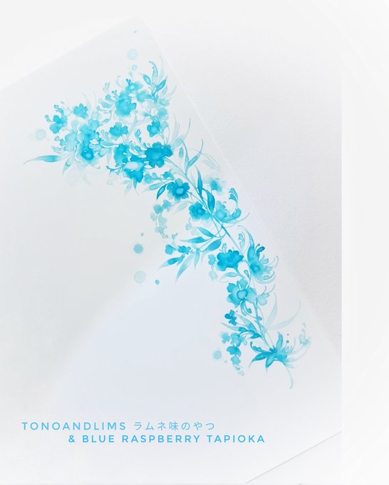 #TonoandLims ラムネ味のやつ 🌿 Blue Raspberry tapioka 🫐 라무네아지노야쯔에선 라무네 향이 납니다. 블루 라즈베리 타피오카는 하늘색의 미세 펄이 섞여있어요. 그림도 글씨도 두 잉크를 같이 썼어요. 펄의 유무로 차이를 보시면 될 것 같습니다! 여름 잉크인데 너무 늦게 썼네요🐋