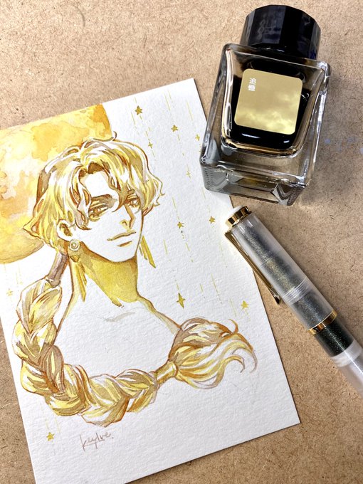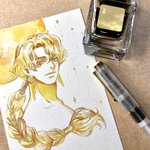 ゴールデンウイークなので金色インク描き比べ。金色といえばD.Gray-manのティムキャンピー! と描いてみたけど力及ばず… 水加減難しい! #インク沼 #TonoandLims #FerrisWheelPress #DIAMINE