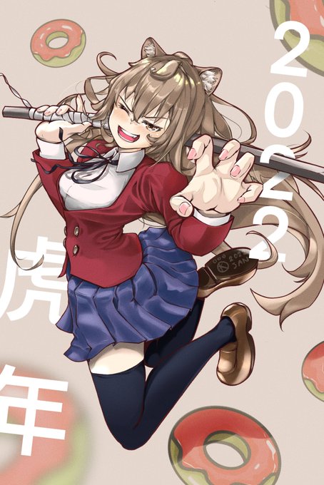 Yeah!!! 🍩Happy New year 2022 #drawing #Illustrations #イラスト好きさんと繋がりた #虎年 #イラスト #お絵描き #絵描きさんと繋がりたい #taigaaisaki #toradora #ArtistOnTwitter #drawing #anime #ツンデレ #とらドラ