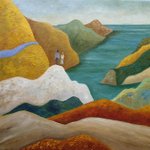 This is my painting "Murmur Of Sea And Birds". You can check it out here: fineartamerica.com/featured/murmu… #art #arte #artlovers #kunst #ArtistOnTwitter #repost #fields #coast #woman #alone #landscape #hill #mountain #tree #stripes #artprints