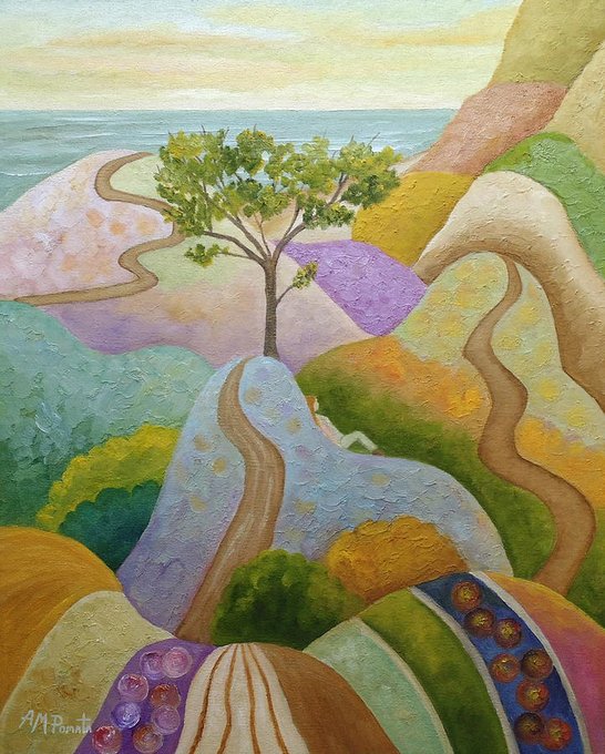 This is my painting "Deep Seeds". The original is for sale (please DM me if interested!), and you can find also very nice prints of it here: fineartamerica.com/featured/deep-… #art #painting #arte #tree #stripes #kunst #ArtistOnTwitter #fields #coast #woman #landscape #mountain #artprints