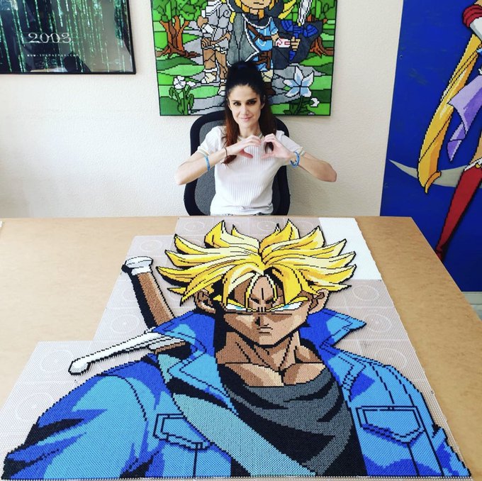 Dragon Ball 🔥 “Ok, ahora al plan B, sea lo que sea.” Espero que os guste, feliz día 💫 #beads #pixelart #DragonBall #DragonBallSuper #vegeta #trunks #manga
