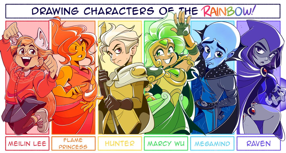 The complete set of characters from my rainbow series I did a while back! #TurningRed #AdventureTime #TOH #Amphibia #Megamind #TeenTitans