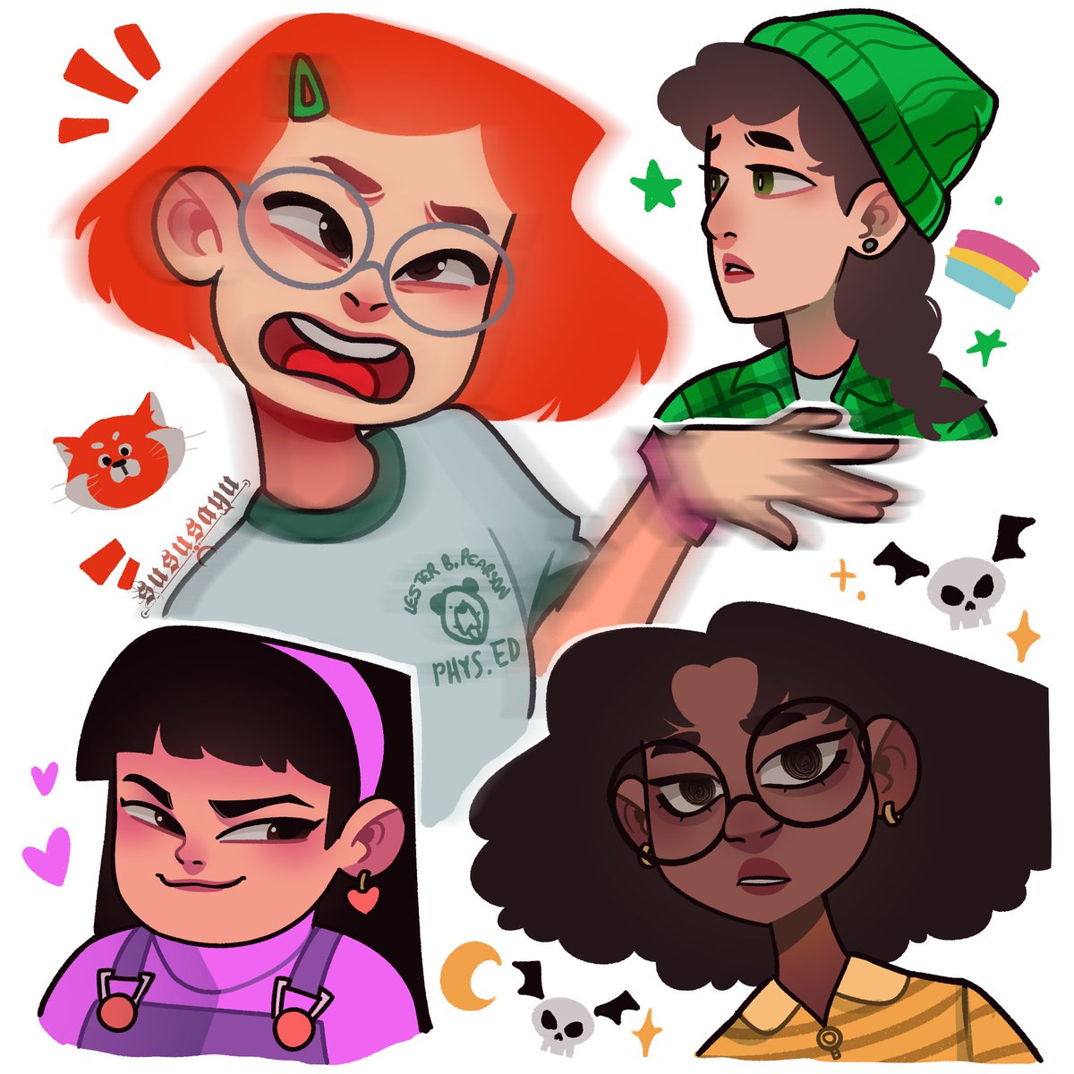The complete set of characters from my rainbow series I did a while back! #TurningRed #AdventureTime #TOH #Amphibia #Megamind #TeenTitans