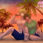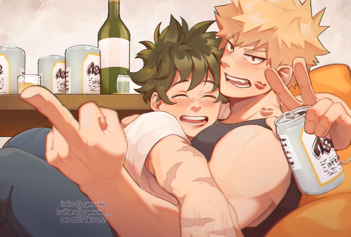 Twin Stars Week 2020: Day 2 - Drinking/Drunk 🍶✨ Class 1-A weren't supervised on the island so they had a little fun~ Drunk Kacchan finding solace in pinching Drunk Deku's cheekies 🤧❤️ #twinstarsweek #twinstarsweek2020 #bkdk #bakudeku #ktdk #katsudeku #bnha