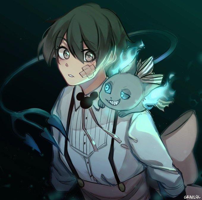 I've been into twst lately💦 so here's my yuu, Nea along with Grimm! #twstプラス #twistedwonderlandoc #twstoc #twistedwonderlandmc