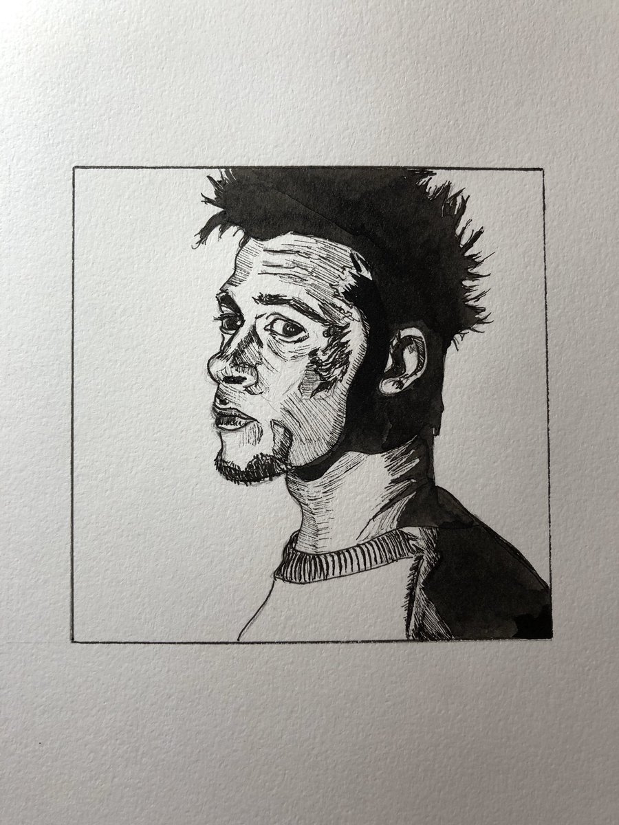 Inktober Day 29 is Injured. I’ve been waiting to find an excuse to draw Tyler Durden! #inktober #inktober2019 #ink #injured #tylerdurden #fightclub #bradpitt