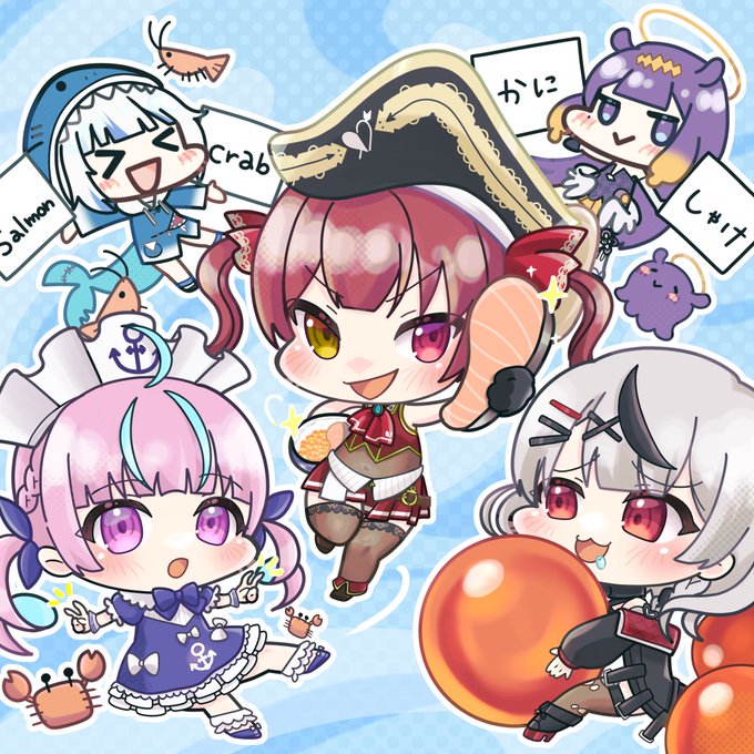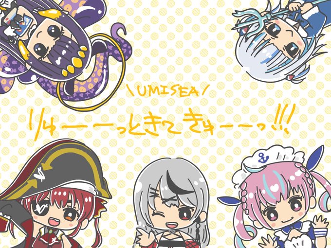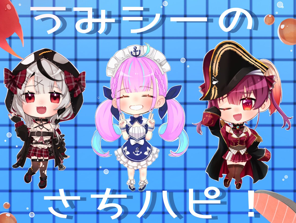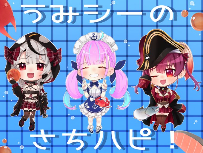 【🏝告知】ホロライブ UMISEA in サンシャインシティ、宝鐘マリンさん、湊あくあさん、沙花又クロヱさんのミニキャライラストを描かせて頂きました! 5/26より展開開始しております。どうぞよろしくお願いします! chugai-contents.jp/blog/event/umi… #ホロライブ #UMISEA